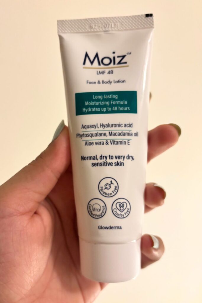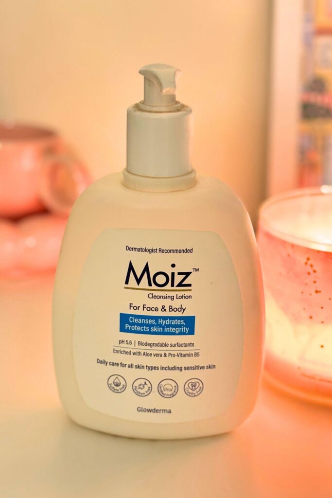 It’s Moiz Cleansing Lotion from Glowderma (an Indian pharmacy brand).