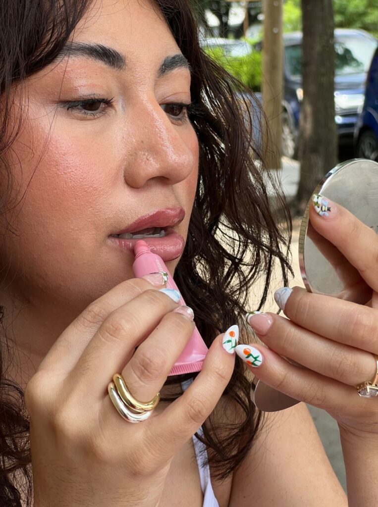 When I’m not wearing makeup, but still want to look stylish, I reach for a tinted lip balm, a bold matte, or a soft rose hue.
