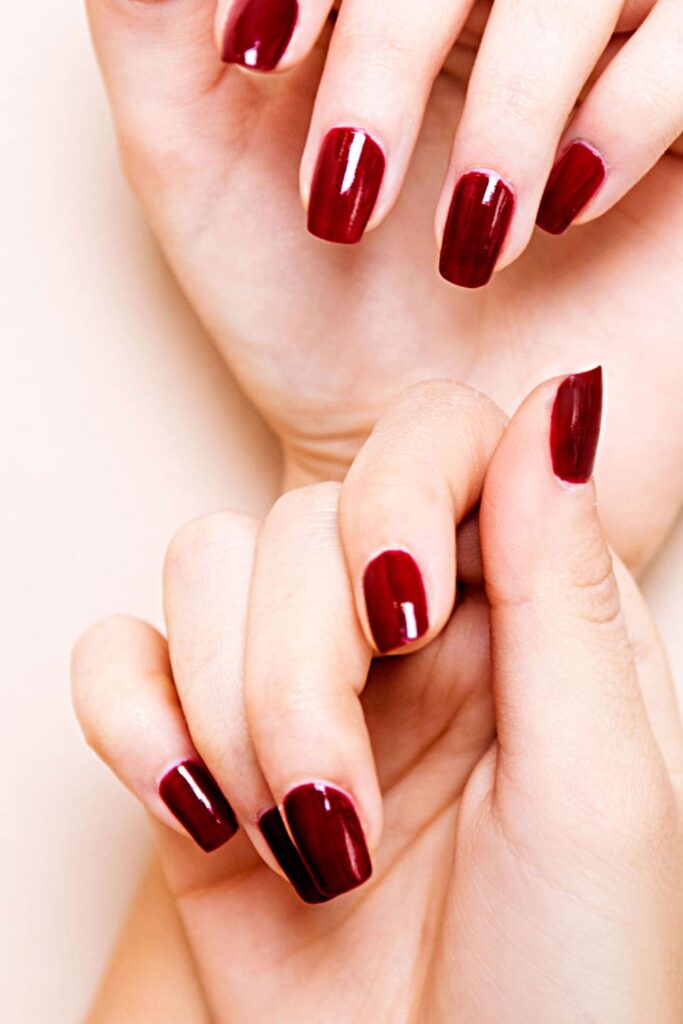 And these glossy burgundy nails prove it. The rich and deep tone is timeless, making it perfect for everyday wear or formal occasions.