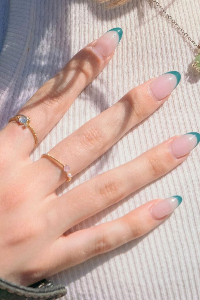 12. Soft Green French Tips