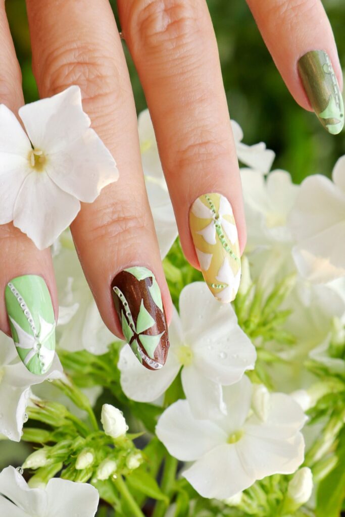 15. Earthy Green Floral Nails