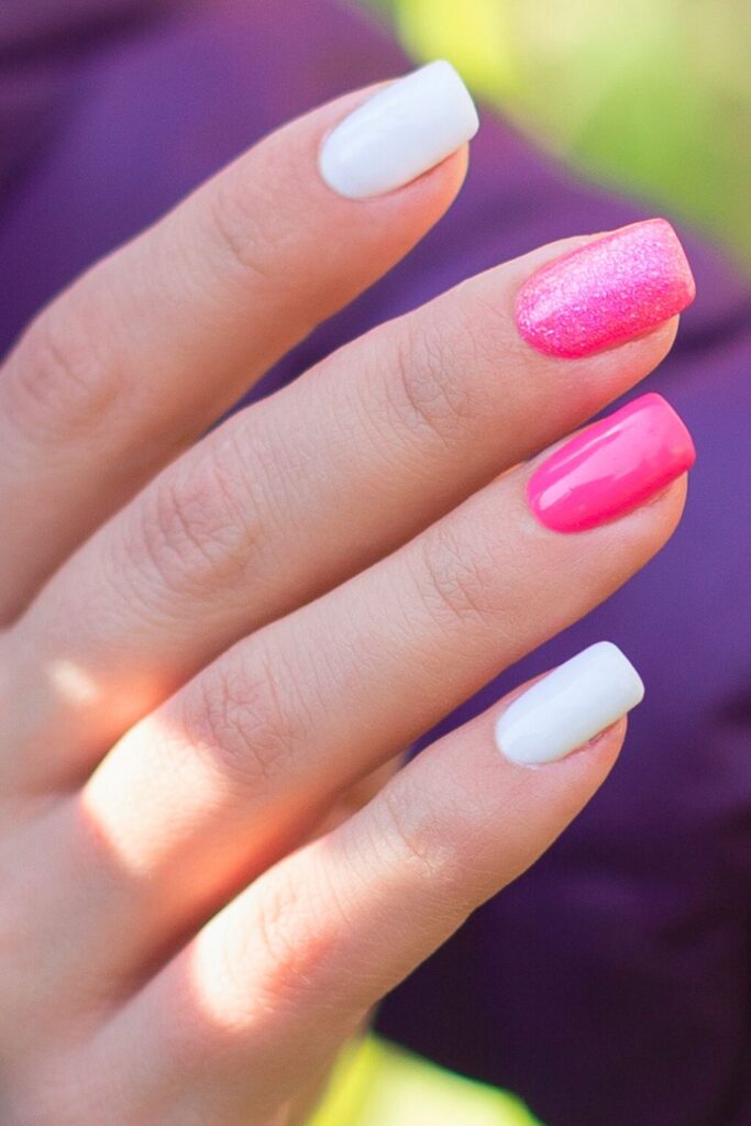 3. Pink and White Color-Blocked Nails