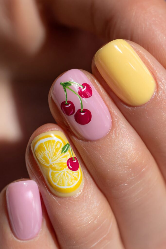 5. Playful Cherry & Citrus Spring Nails