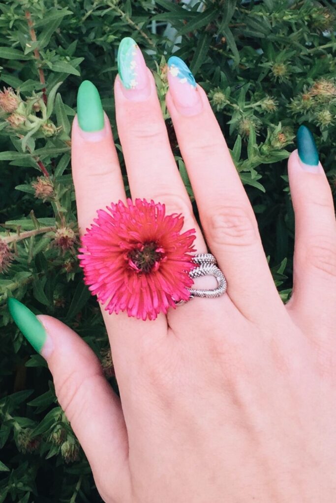 It’s the kind of spring nail look that feels a little artsy and a little botanical.