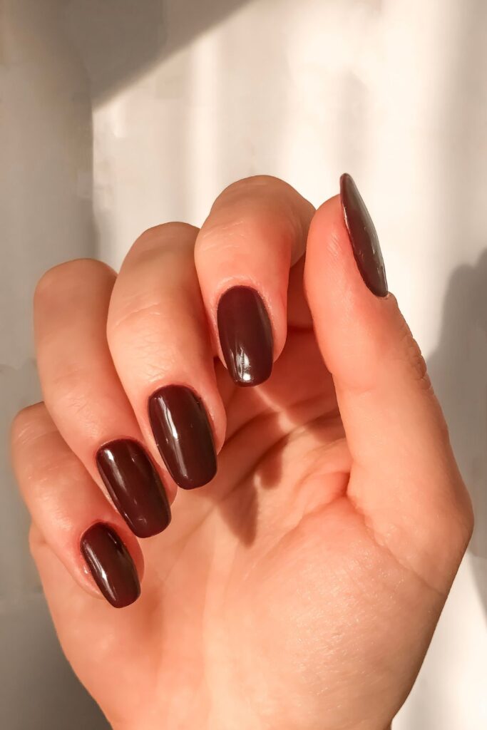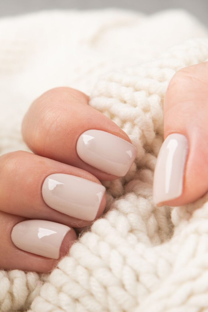 These nails have pure sweater weather energy. It’s just a soft muted gray with a glossy finish—simple, sleek, and totally on point for the season.