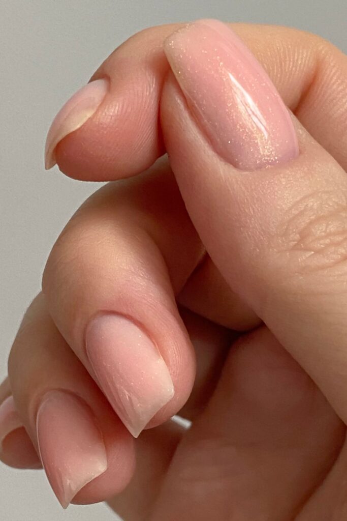 The most stunning look are sometimes the simplest. This soft pink, sheer polish with the tiniest hint of shimmer gives your nails a healthy glossy finish without doing too much.